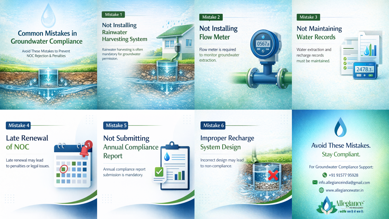 Groundwater compliance is a mandatory requirement for industries, commercial buildings, infrastructure projects, and institutions using groundwater. However, many organizations face NOC rejection, penalties, or legal issues due to common compliance mistakes.