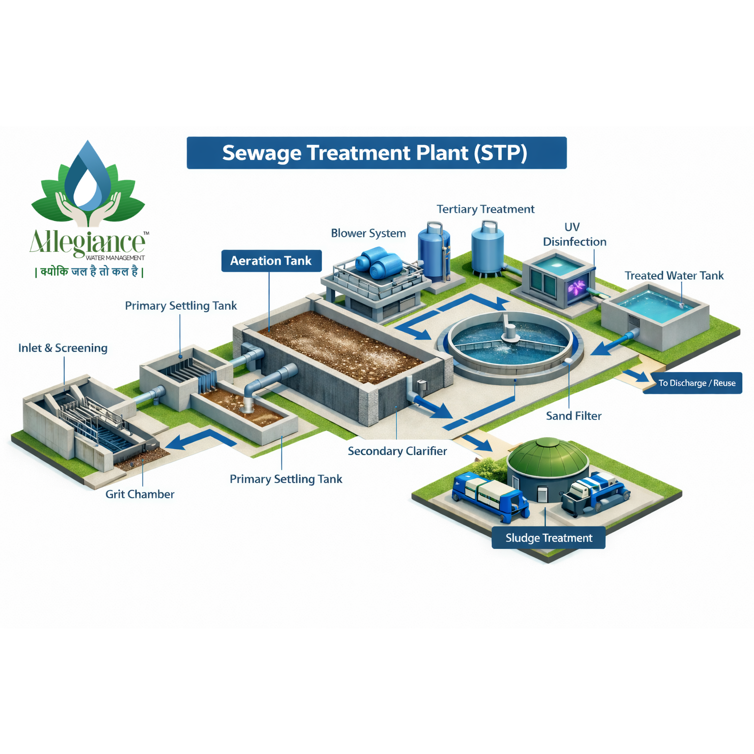 At Allegiance Water Management, we provide complete STP solutions including design, installation, operation, maintenance, and monitoring to ensure efficient and compliant wastewater treatment.