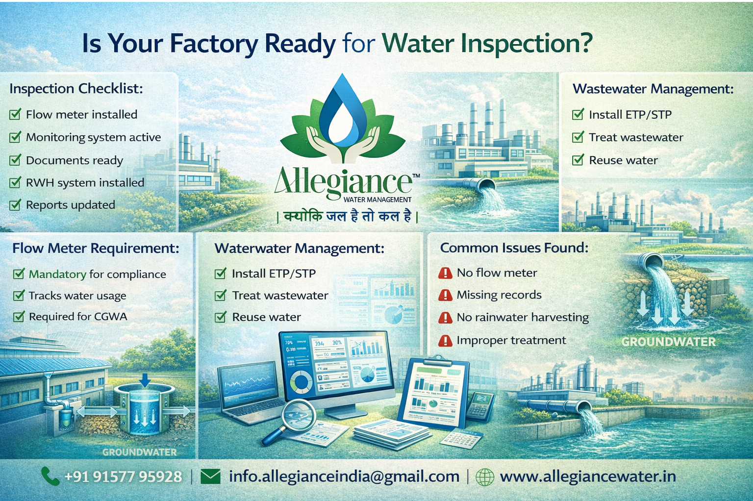 Water inspection ensures that industries comply with groundwater regulations and follow responsible water management practices.